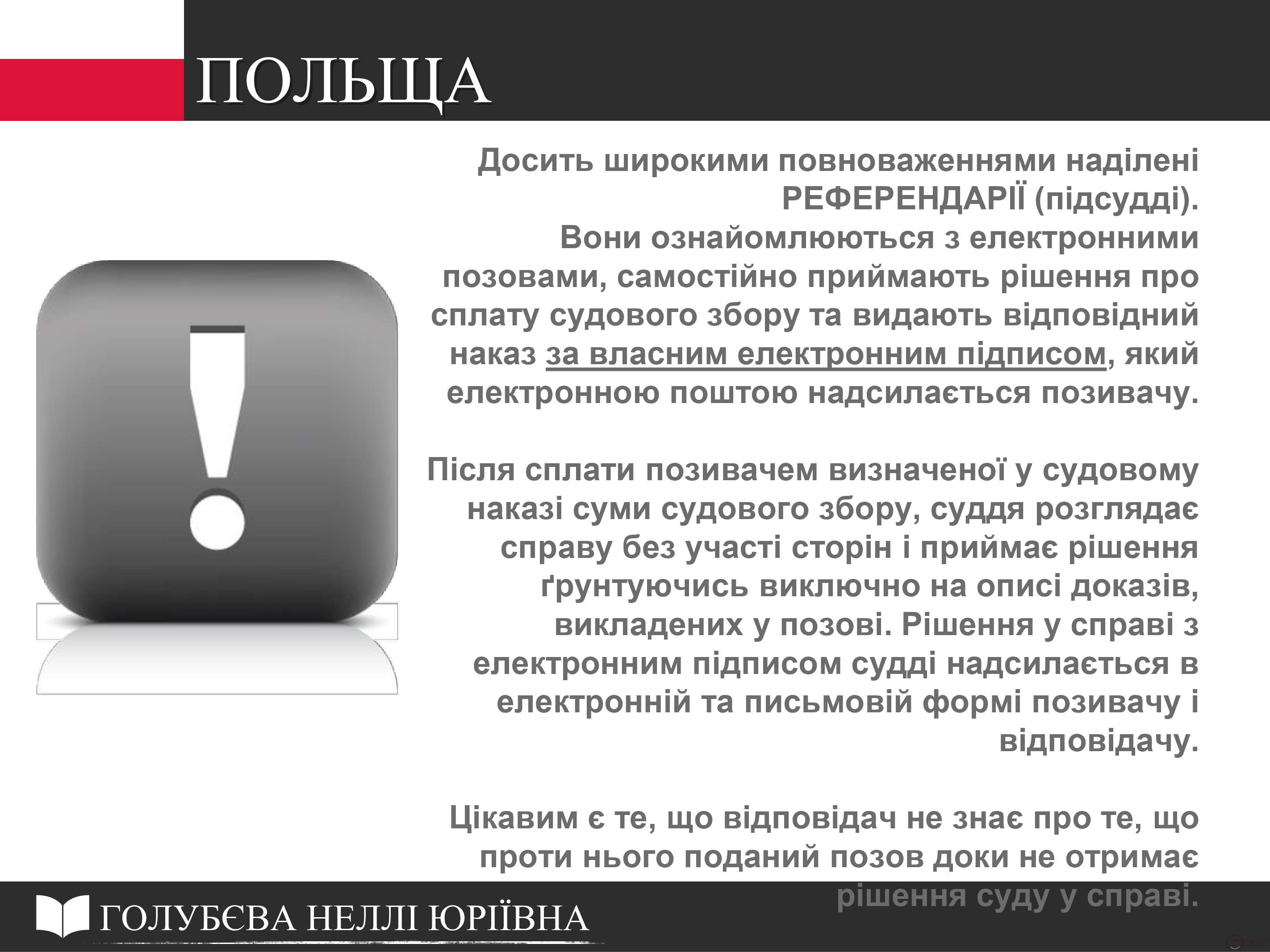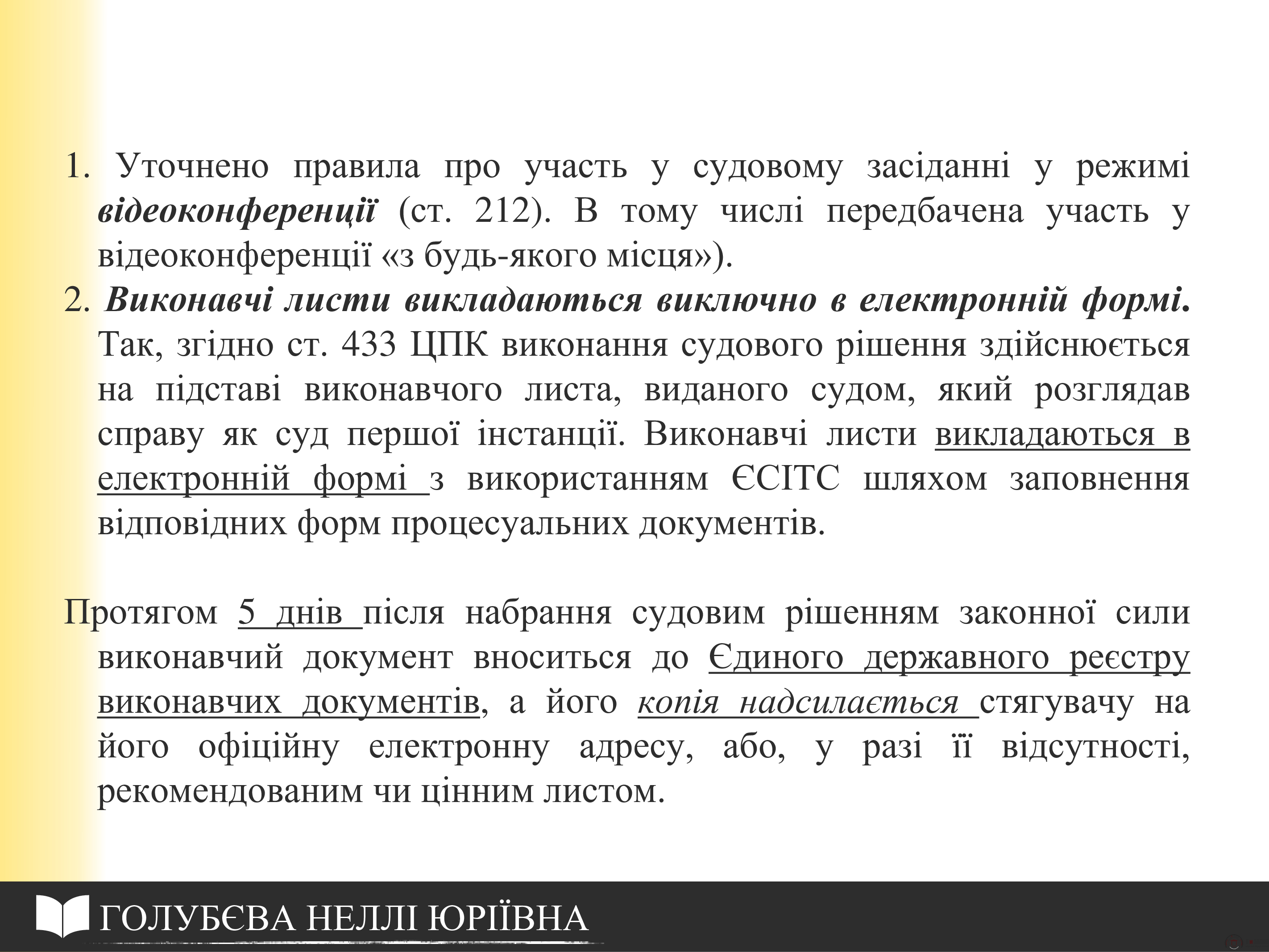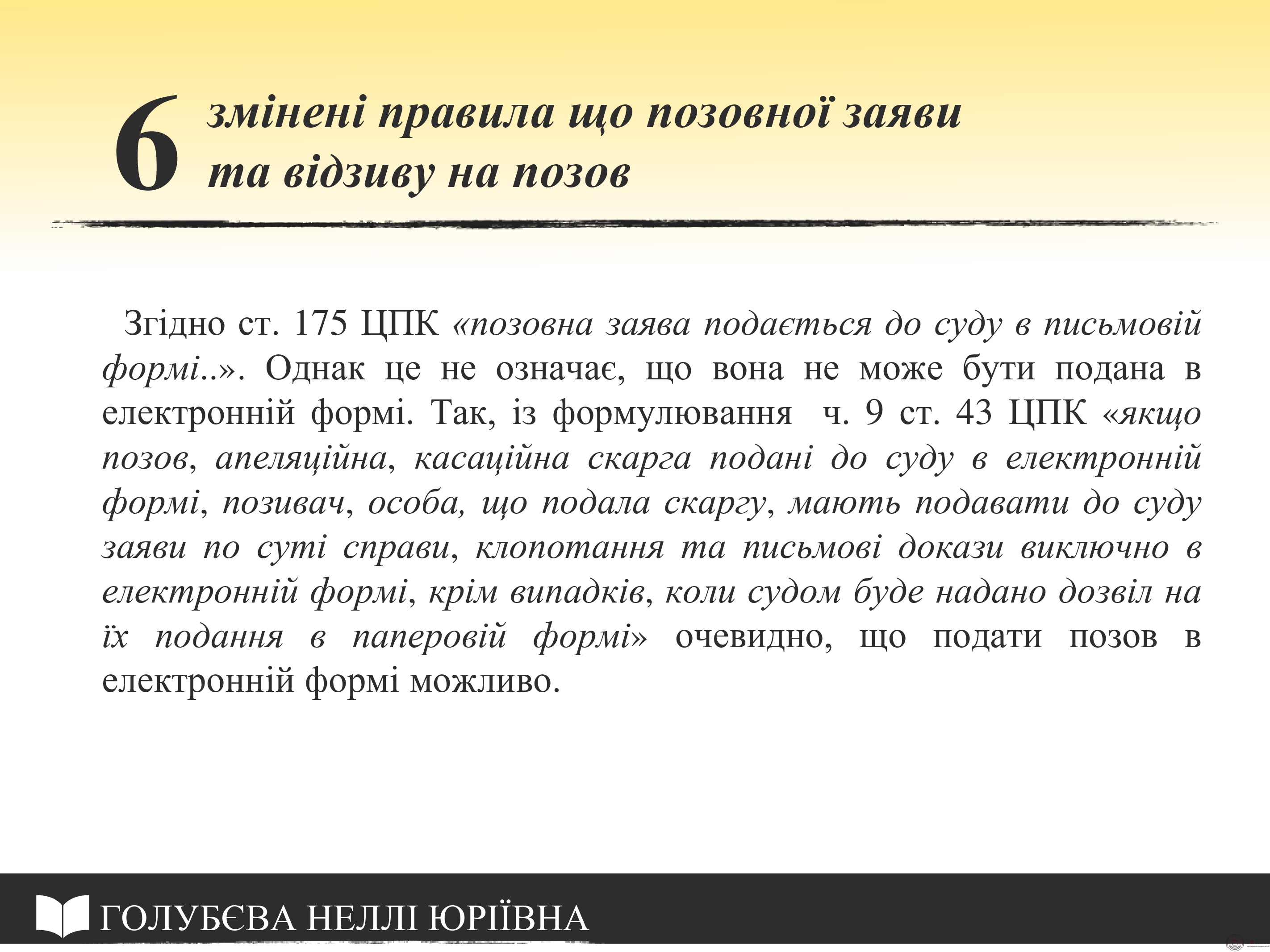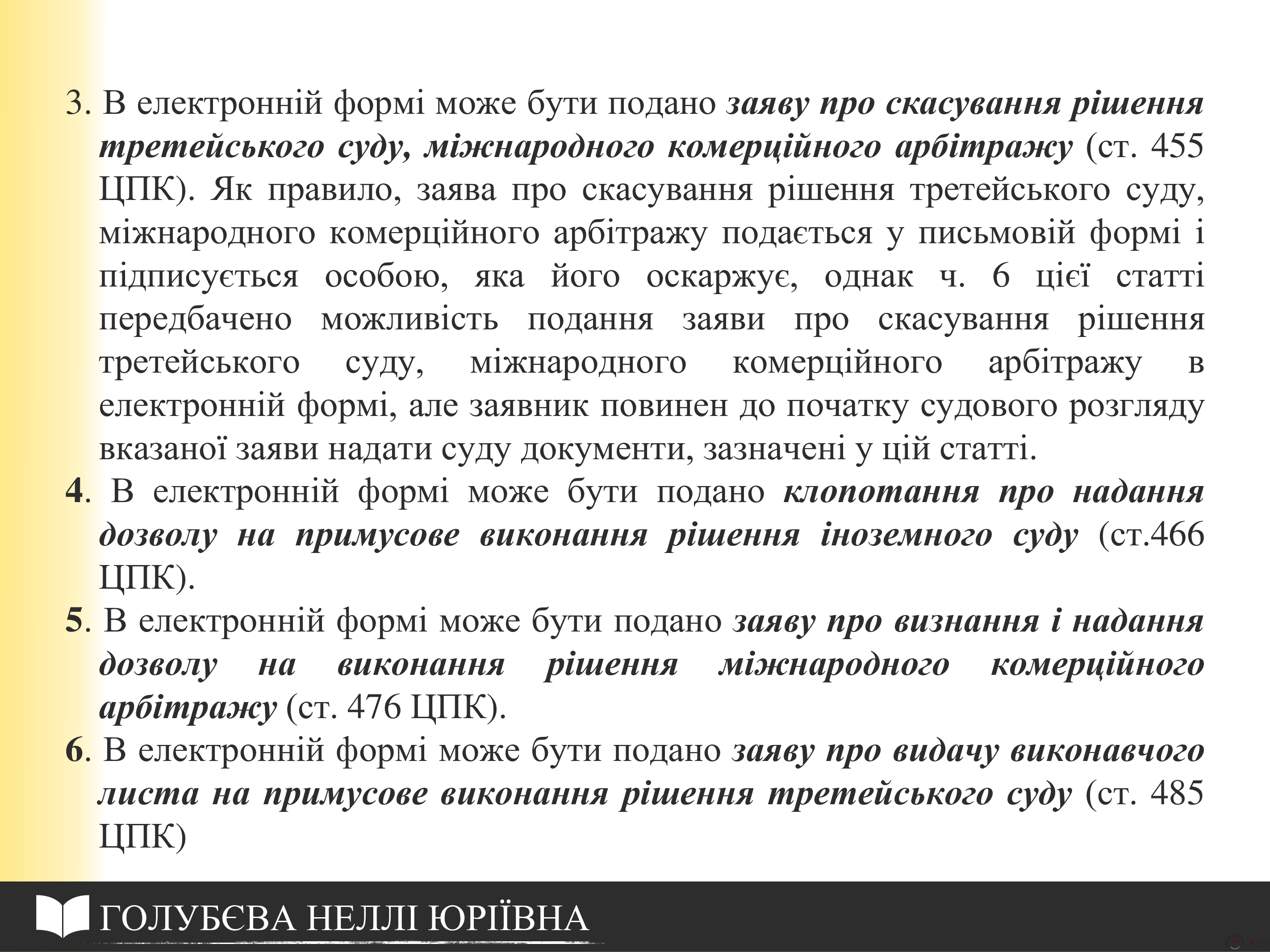 Во время докладов я пыталась комментировать ГПК (как и ХПК в этой части) опираясь на опыт других стран, разных моделей электронного судопроизводства (по крайней мере выделяю три таких принципиально разных модели) и текст процессуальных кодексов. В презентации есть только «сухое» изложение действующих процессуальных норм с беглым анализом, которое, конечно, нуждается в отдельных объяснениях.