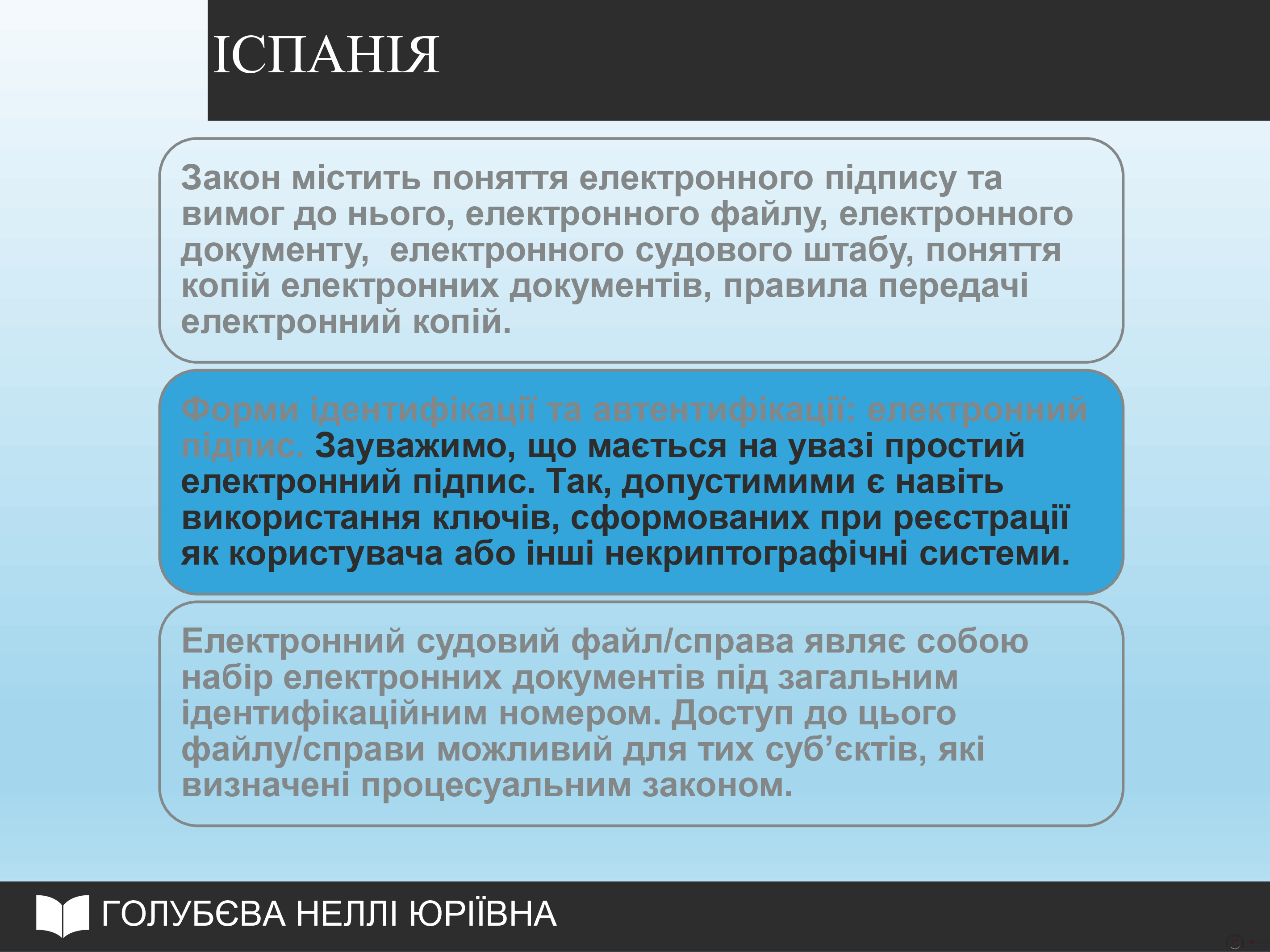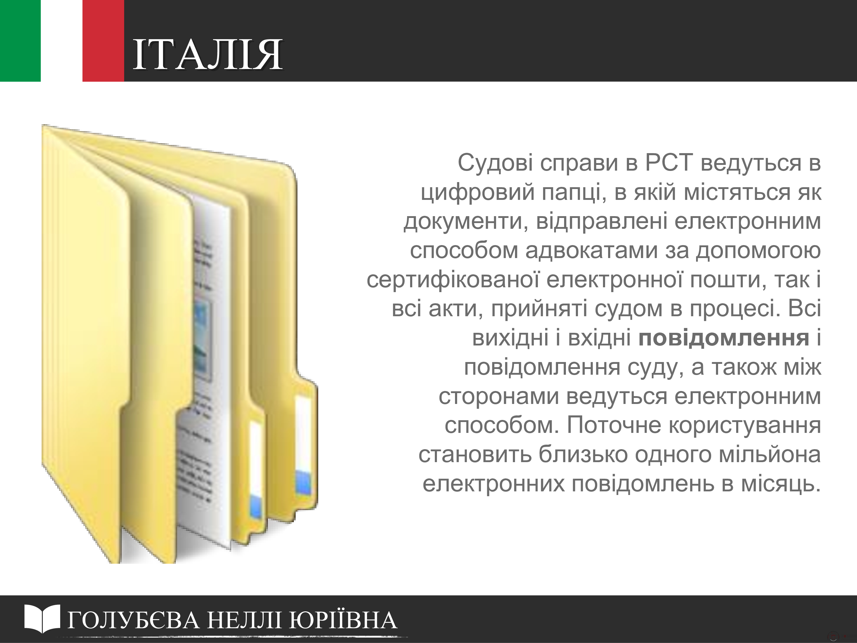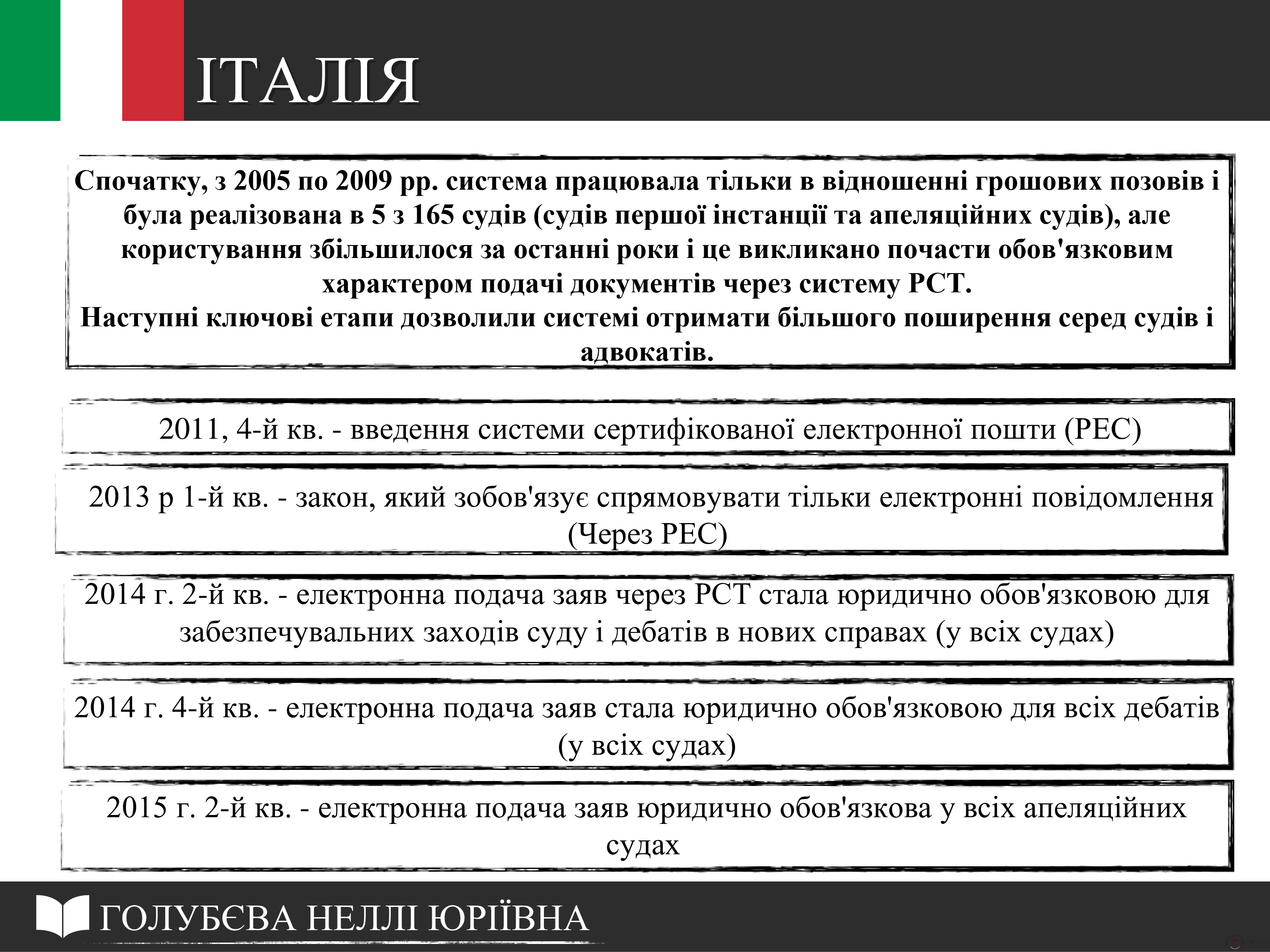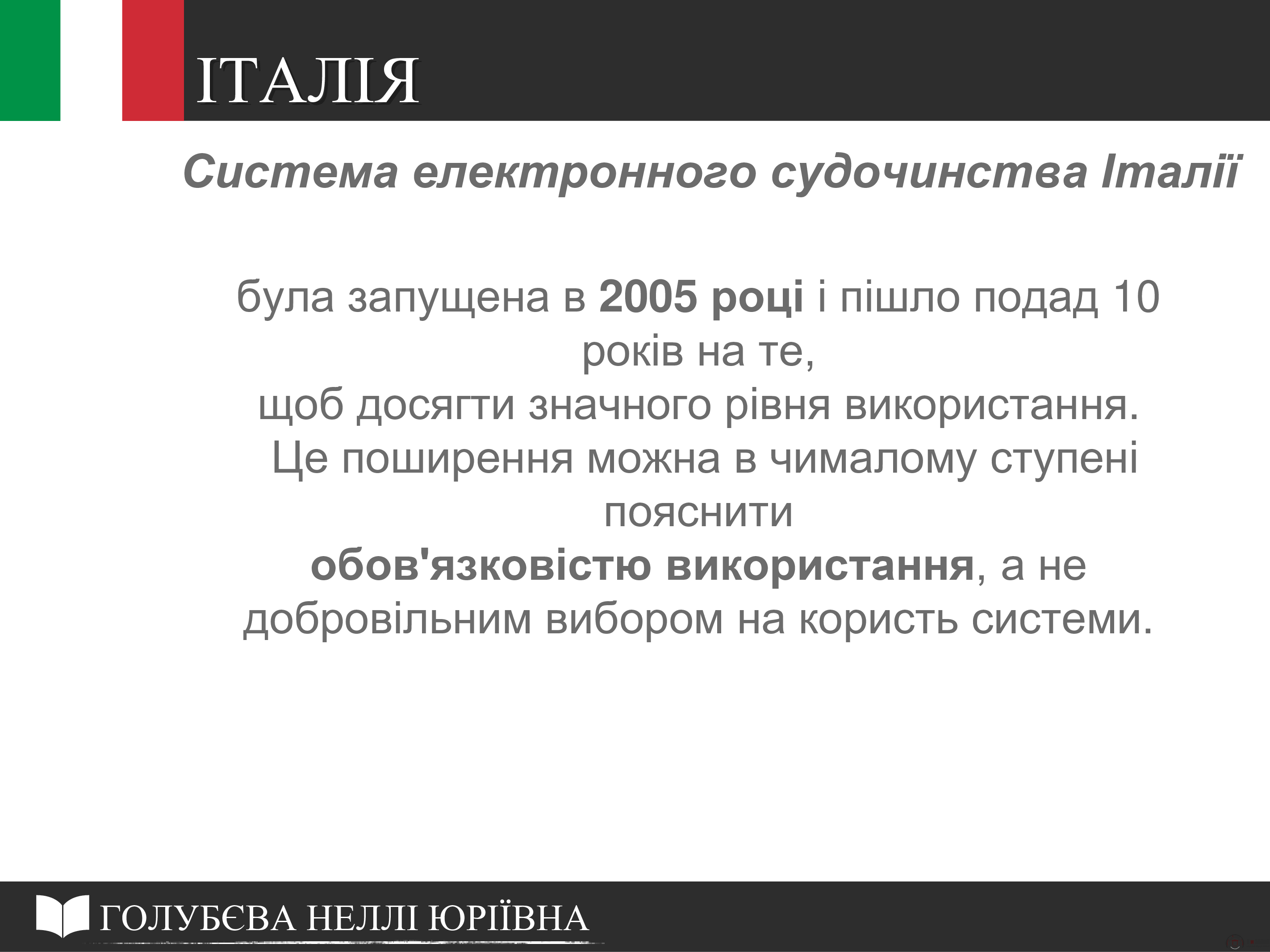 14. Голубєва Н.Ю. Впровадження інформаційно-телекомунікаційних технологій в судову діяльність Німеччини та Франції // Вісник асоціації слідчих суддів України. – 2018. — №1. – С. 37-41.