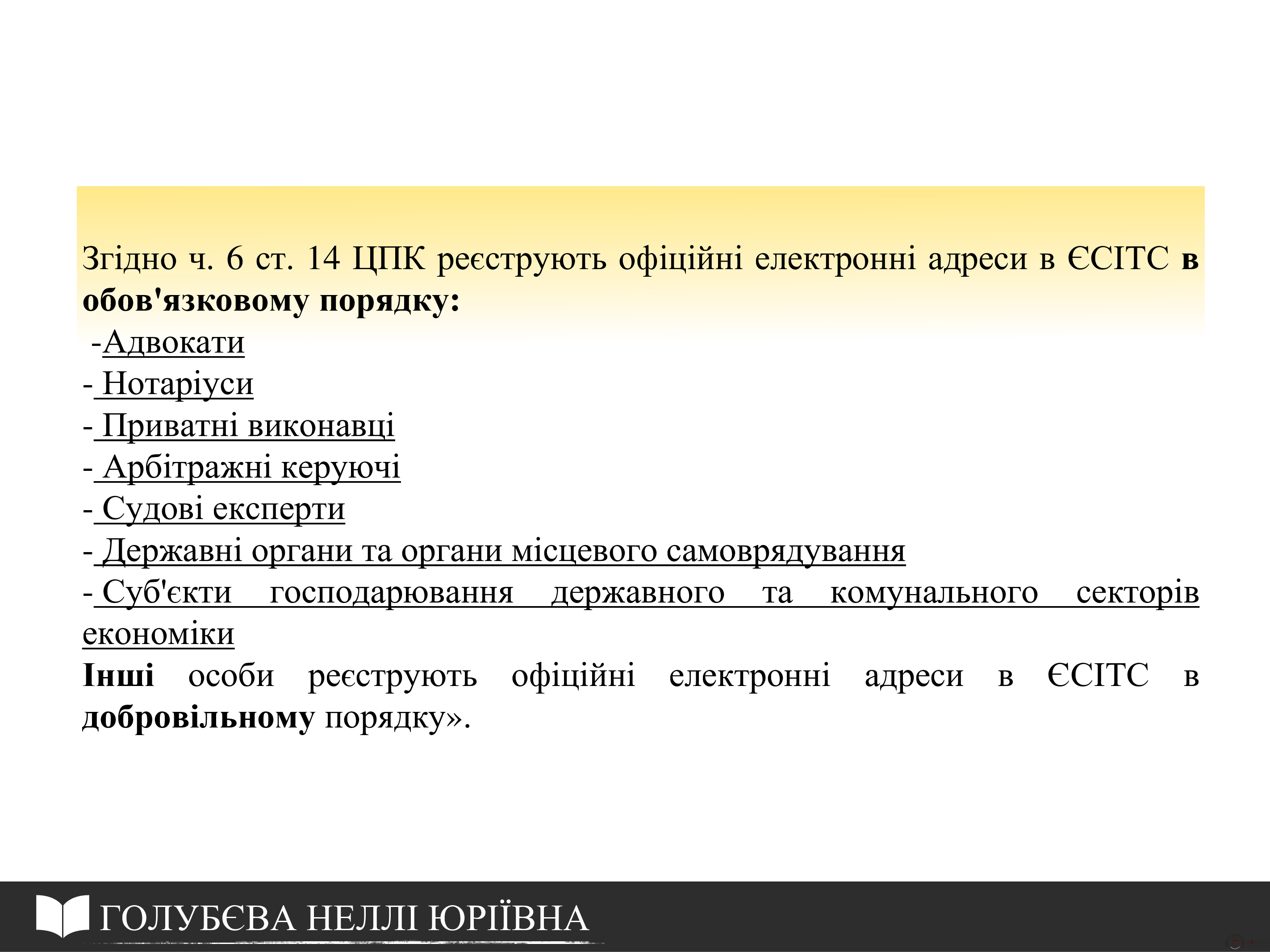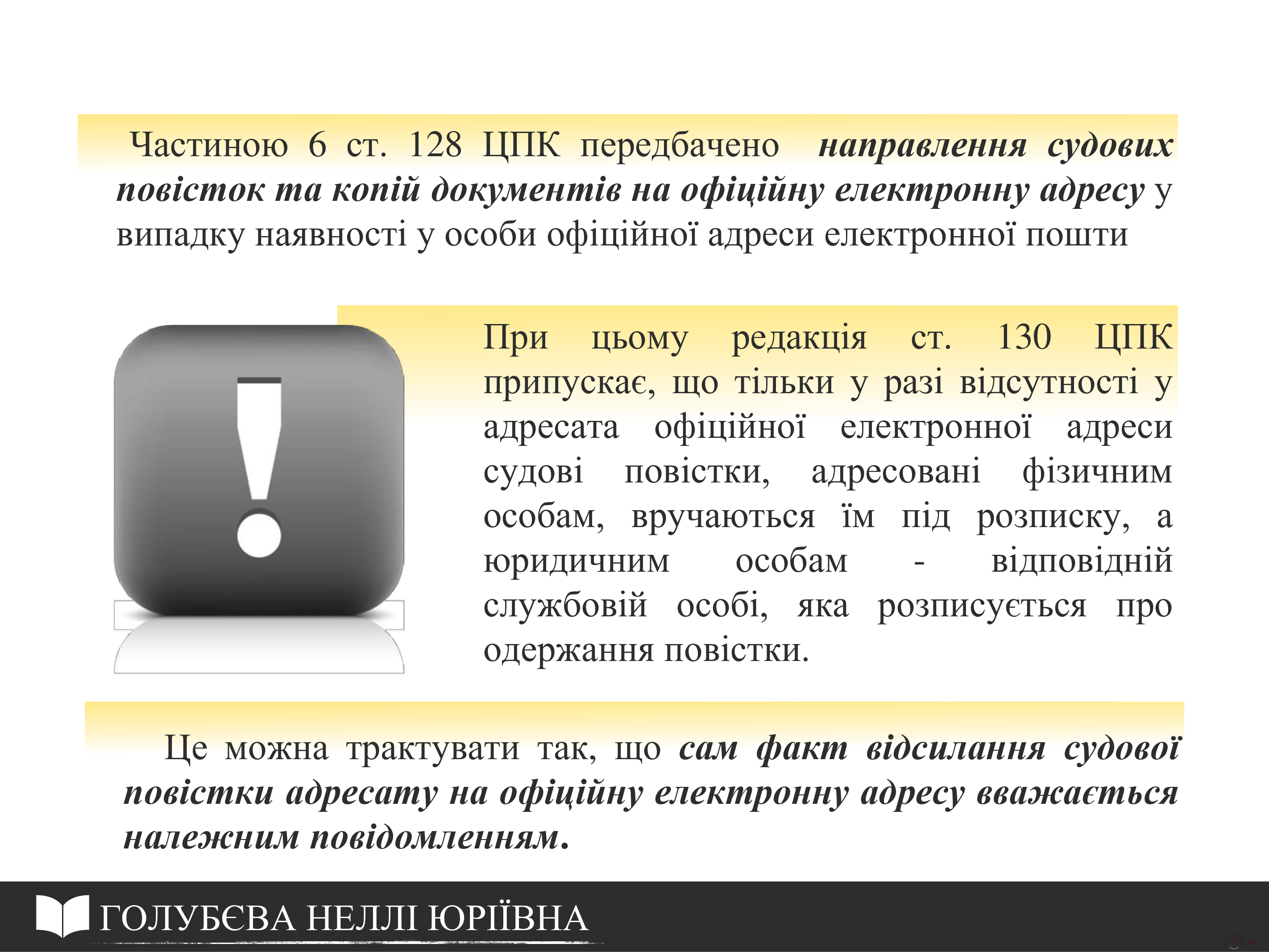 8. Голубева Н.Ю. Электронный суд: комментарий к Проекту ГПК // https://yaizakon.com.ua/elektronnyj-sud-kommentarij-k-proektu-gpk/ Дата публікації: 11 квітня 2017