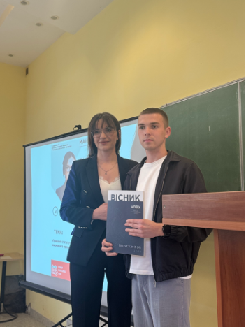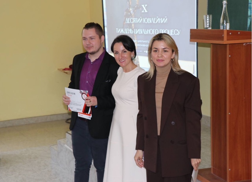 І місце – М.М. Білошкурський студент 2 курсу факультету Цивільної та господарської юстиції з темою: «Протидія корупції через цивільно-правові інструменти: нові підходи до цивільного та нотаріального процесу» (науковий керівник: к.ю.н., доцент І.М. Іліопол);
